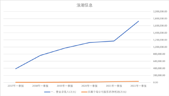 2022年一季度,浪潮信息营业收入172.77亿,较上年同期增加48.11%;净利润3.24亿,较上年同期增加38.33%。主要系客户需求增加,服务器销售增长所致。