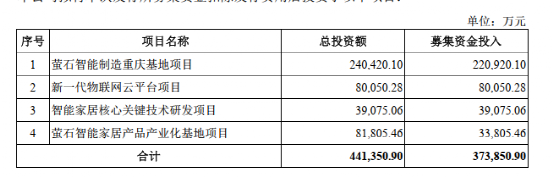 公司打算募资38.39亿,主要用来重庆基地、物联网云平台等项目的投入。