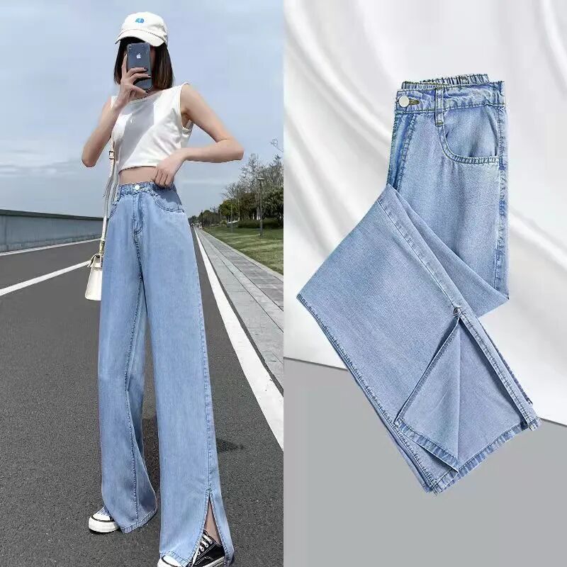 天丝开衩牛仔阔腿裤,清爽不闷热,一穿就上瘾!