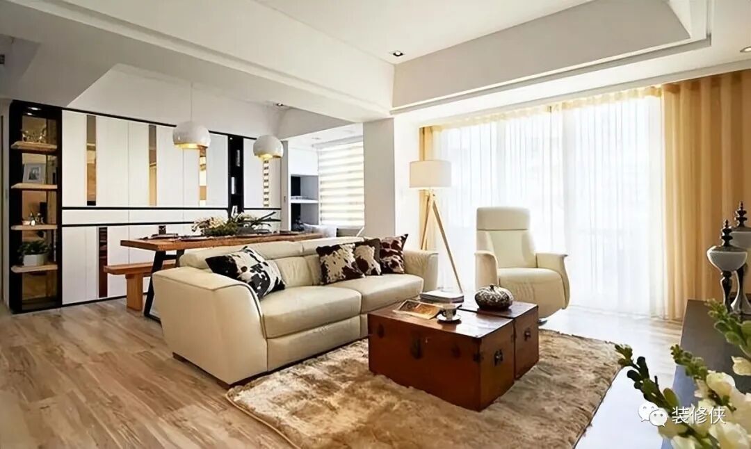 横厅的户型,大部分都会选择将客厅餐厅设计在一起,这样才能够最大程度地利用空间,减少空间浪费,但同时也意味着两个区域之间没有明显的分隔线,会很容易变得凌乱。
