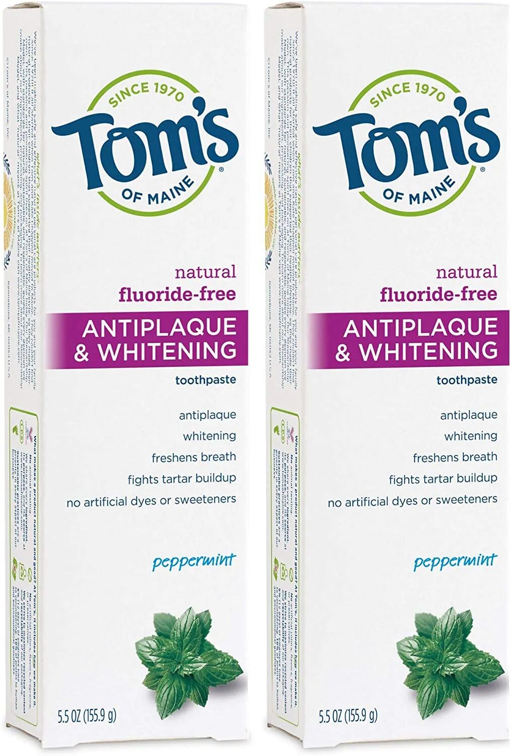 Tom's of Maine 抗牙菌斑美白无氟牙膏,薄荷味,5.5盎司,2支装