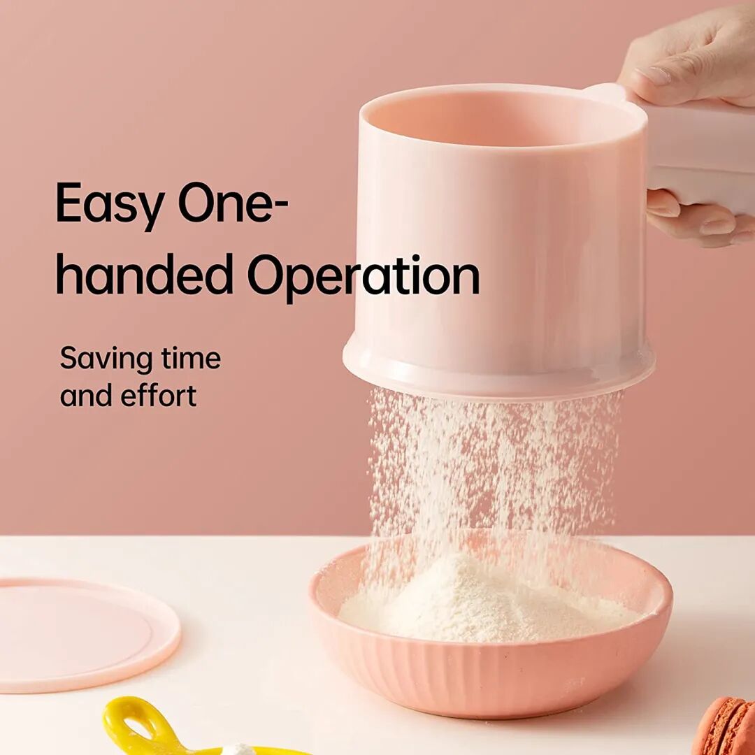 ▲这款过筛器带有手动按压装置,通过调整手部按压装置就可以实现一手倒入面粉,一手直接过筛。使得过筛过程更顺畅,更快速。