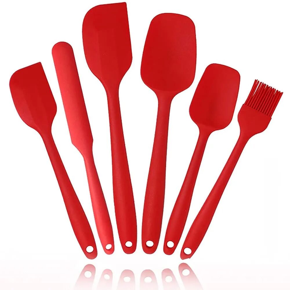 ▲这套硅胶厨具对高温、油脂、酸性都有很强的抵抗力,硅胶刮刀、硅胶铲、硅胶刷,不同大小一次性备齐。