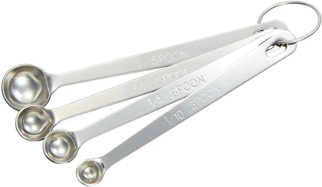 ▲有些教学视频里计量是以茶勺、汤勺为单位的,特别是在一些欧美美食博主的教学视频中尤为常见,所以这样一套计量汤勺也非常有必要准备哦。这套可计量1勺、1/2勺、1/4勺、1/10勺。