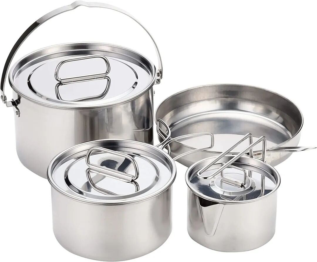 家庭出行的好帮手,有L和M号,多人直接入手大号,一套4件产品,3个汤锅+1个平底锅可以满足大部分的烹饪需求。可以收纳到一起,节省空间。