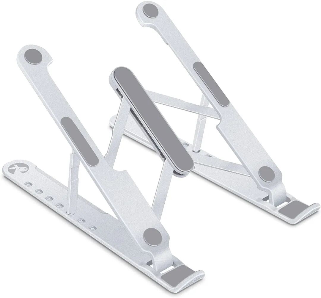 ▲非常便携式的一款电脑支架,铝合金制,整体重量只有25千克,很适合需要经常性外出或出差的职场人。折叠式设计,收起来很小巧。散热非常好,骨架上配有防滑垫,7档可调节,可承重 7-17.3英寸电脑。