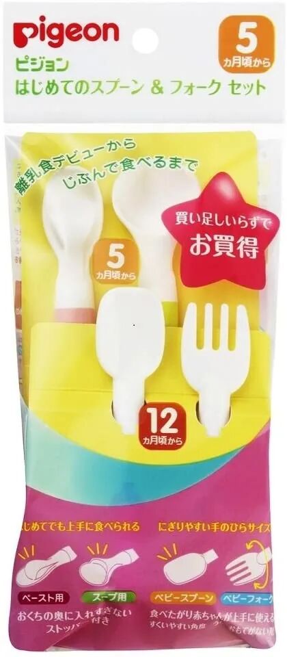 pigeon 贝亲 初次用的勺子&叉子套装 适合5个月以上的宝宝 累计销售300万