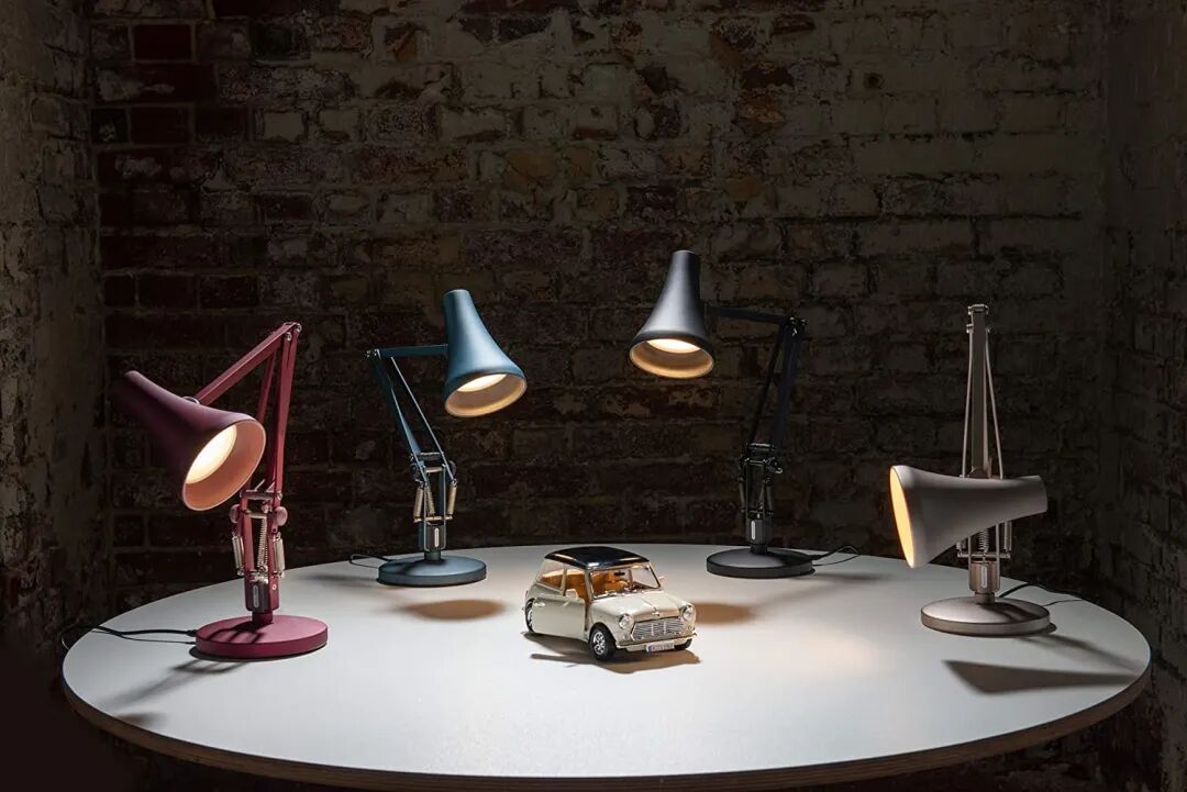 1932年,一位汽车悬架工程师发明了一种新型弹簧,他把弹簧装在工作灯末端,这样就可以便捷地调整灯臂,并保持台灯的平衡,于是史上第一个Anglepoise灯的蓝图就此诞生了。它的灯罩可以进行360度旋转和上下倾斜,整个台灯也可以在底座上转动。