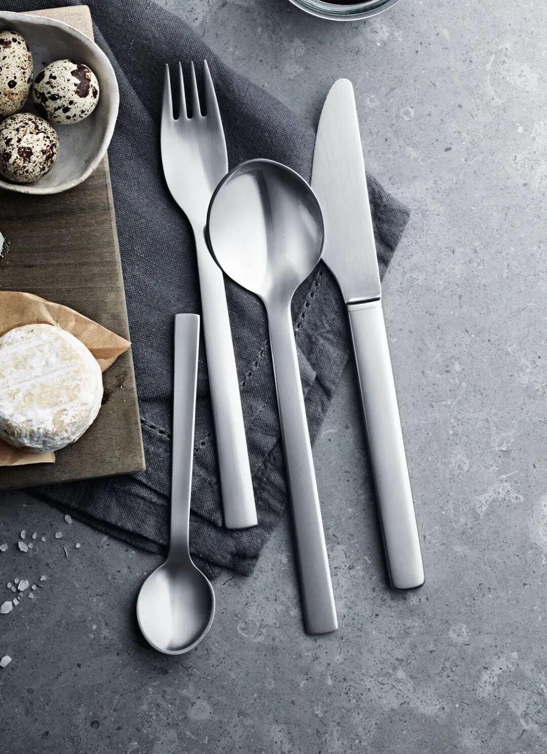 ▲精致的餐具拥有着可以让食物变得更美味的魔力,镜面抛光不锈钢的金属材质,带来干净简约的气质感,给生活更高的仪式感。