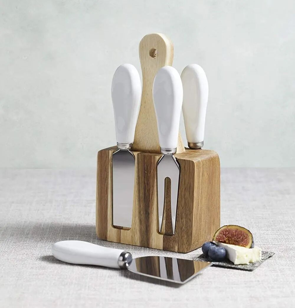 不锈钢奶酪刀和木制刀座套装