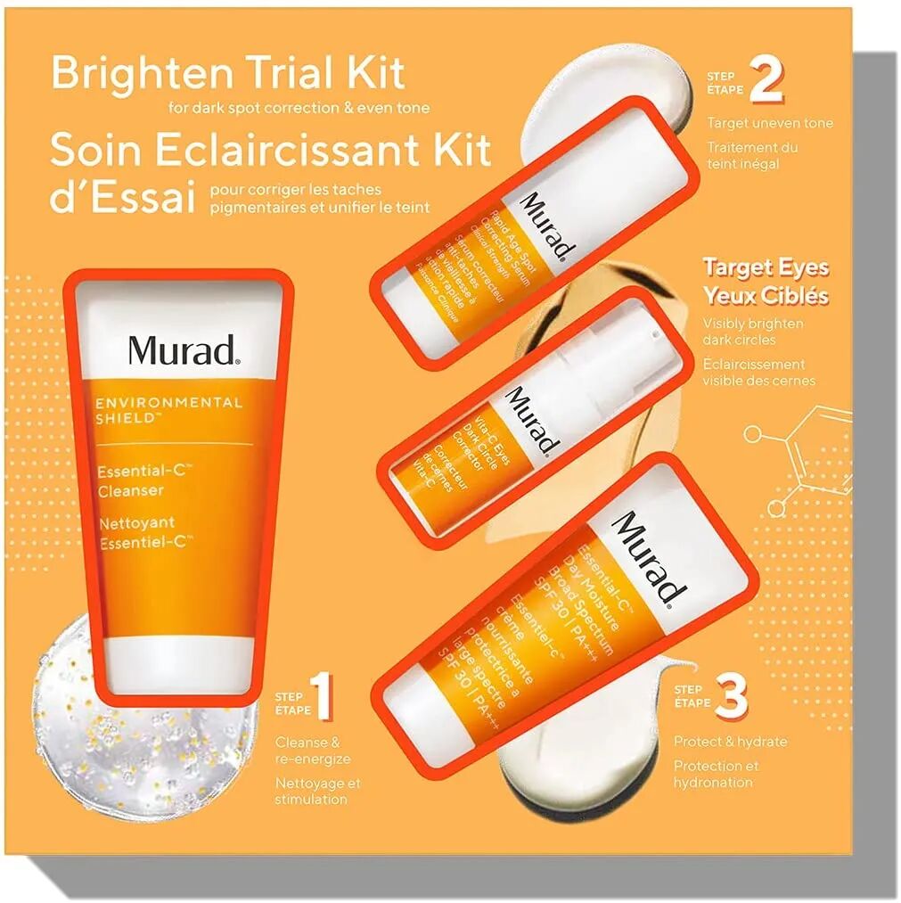 Murad VC提亮美白4件套,这款套装含有维C亮白洁面凝胶+臻白淡斑精华+维C焕亮黑眼圈精华+维C日间防晒霜SPF30。