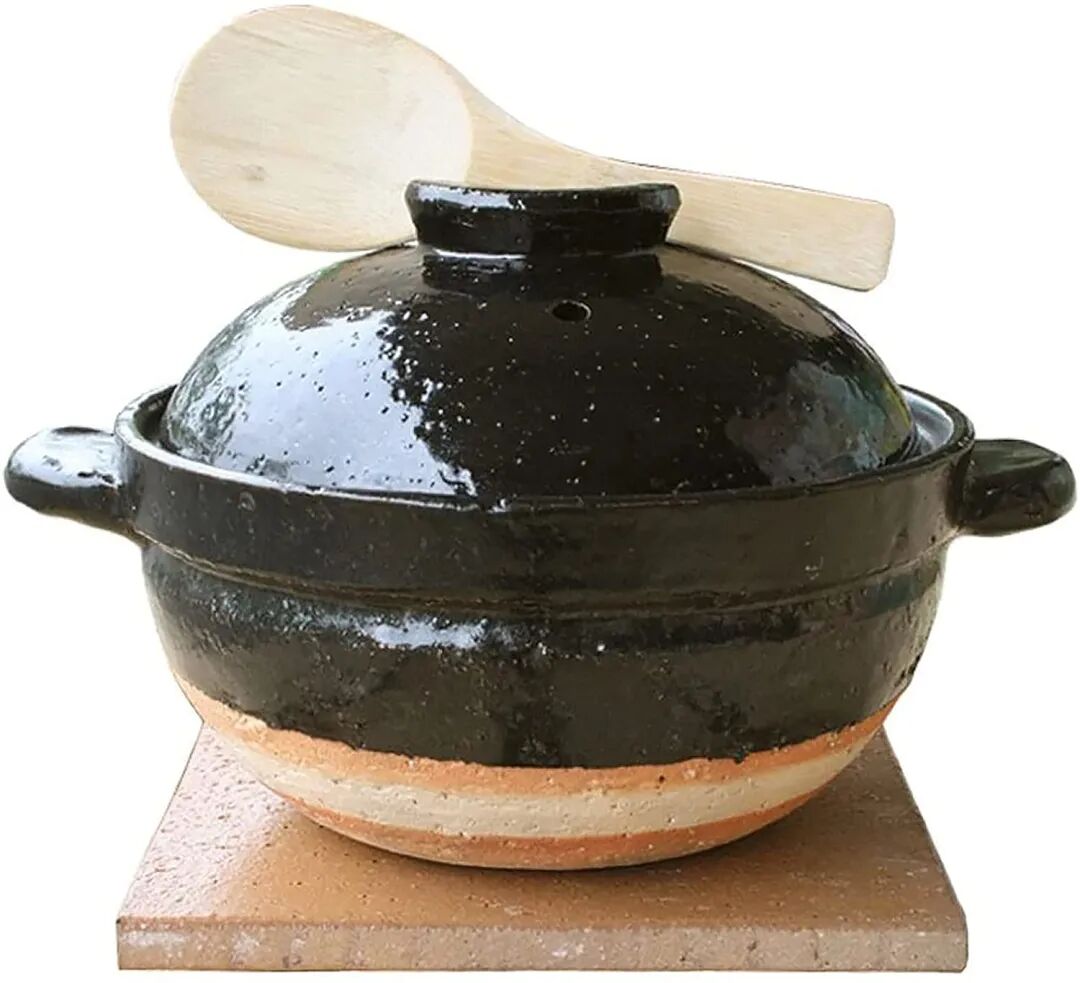 ▲京都米其林二星和久传的同款米饭锅。这只陶土锅采用双盖设计,利用压力来煮饭,等蒸汽冒出就可以熄火,锅内的高温会将米饭持续蒸煮到最佳程度。随锅附赠专用锅垫和木饭勺。
