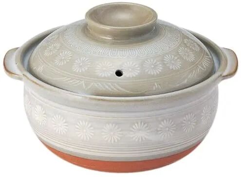 ▲深锅型土锅,很适合煲汤。具有优良耐热性,是陶瓷和瓷器之间的半瓷器。灰地菊纹是日本经典的传统纹饰,直火、烤炉、微波炉均可使用。