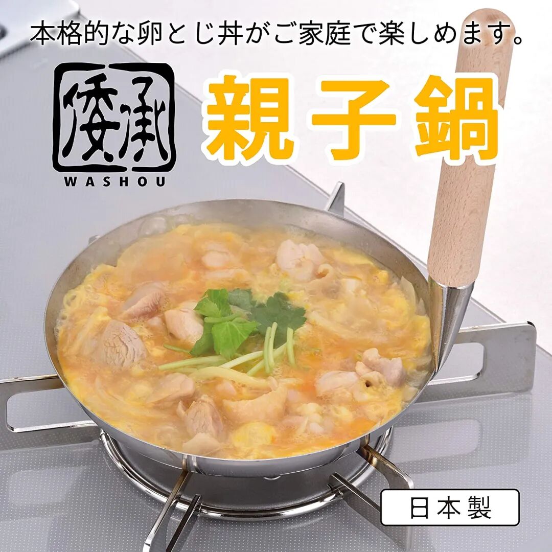 ▲一个可以让你轻松搞定日式丼饭盖浇饭、鸡蛋饭的竖柄亲子锅!不锈钢锅身和天然木材的木质把手,明火、电磁炉都可使用。