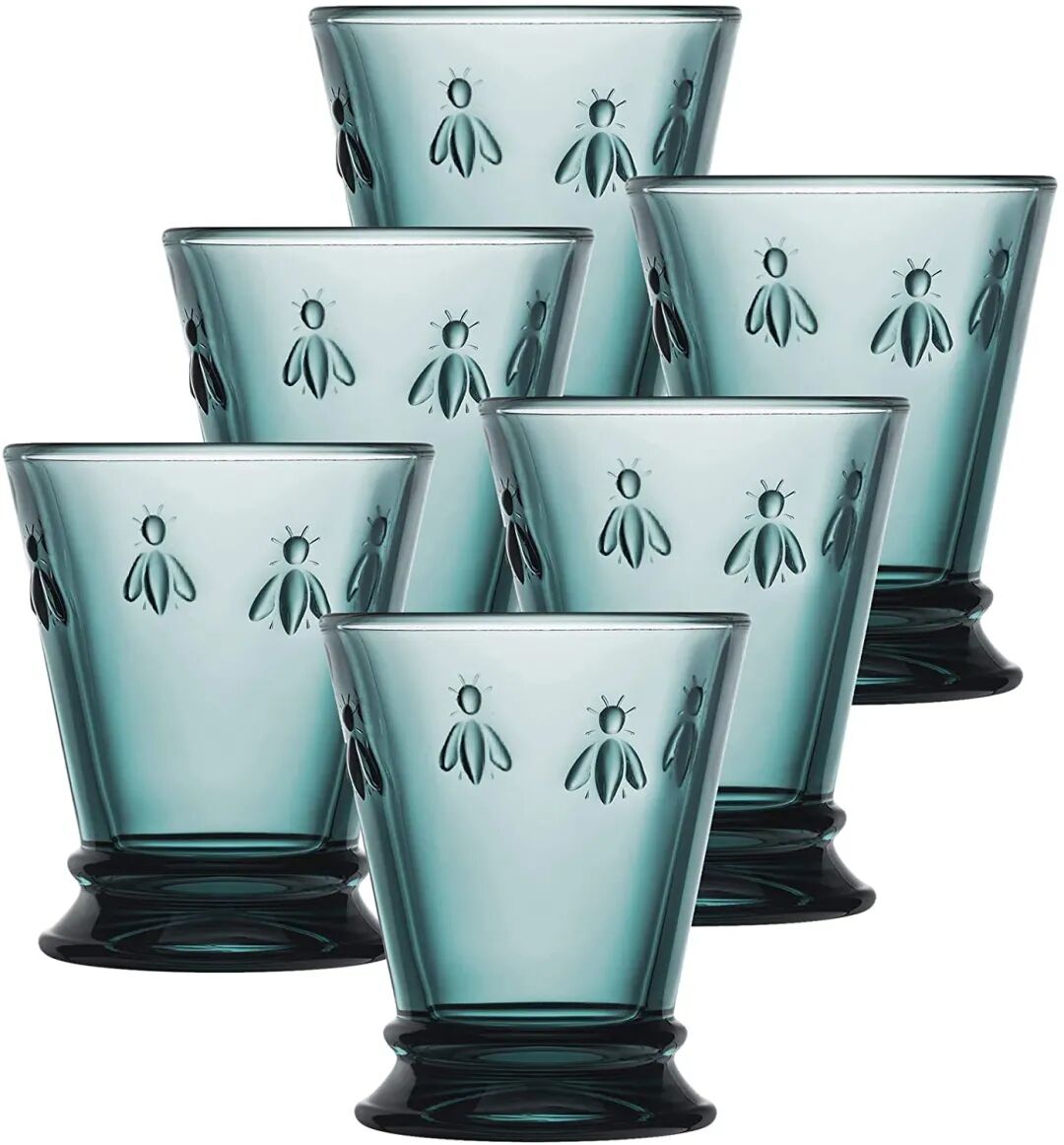 法国拿破仑蜜蜂蓝色玻璃杯6件套