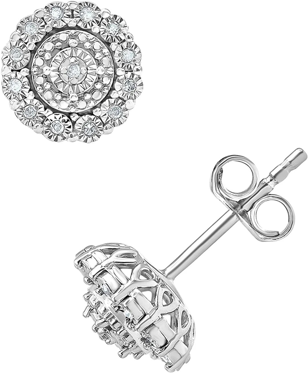 1/10 克拉钻石,爪镶纯银白色圆形钻石奇迹群状光环耳钉