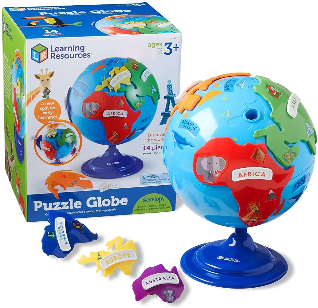 ▲Learning Resources 3D地球仪地理拼图由内球体,搭接扣以及地图拼装块构成。地图拼装块通过搭接扣布置在内球体的外球面上。