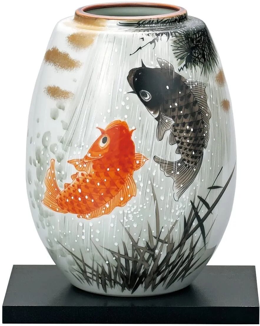 Marusan宫本 九谷烧 花器 8号花瓶 夫妻鲤鱼瀑布