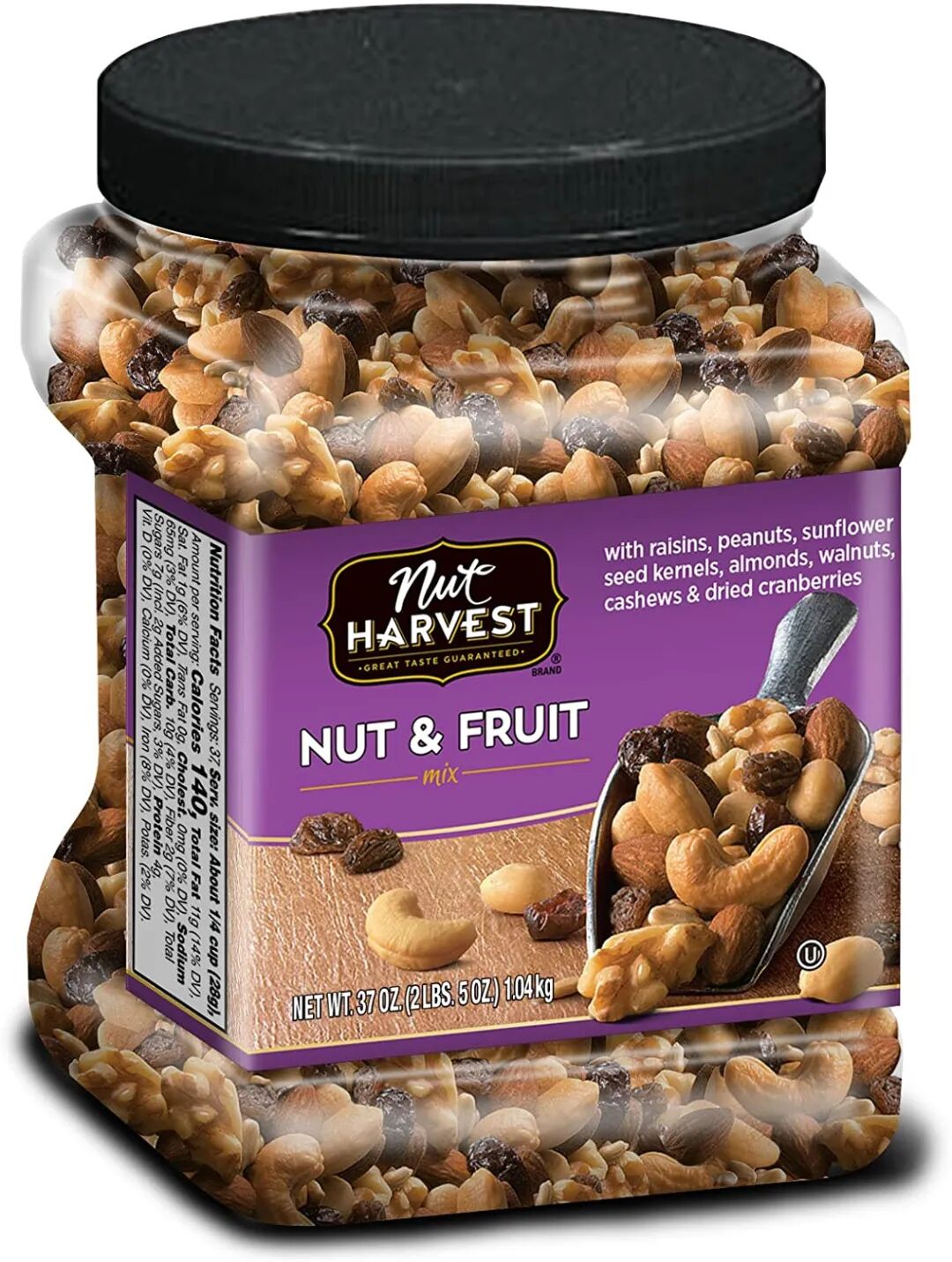 大罐包装,适合分享或者每天泡牛奶或酸奶食用。混合了含葡萄干,花生,葵花籽仁,杏仁,核桃,腰果和蔓越莓干等,补充每一天的营养。