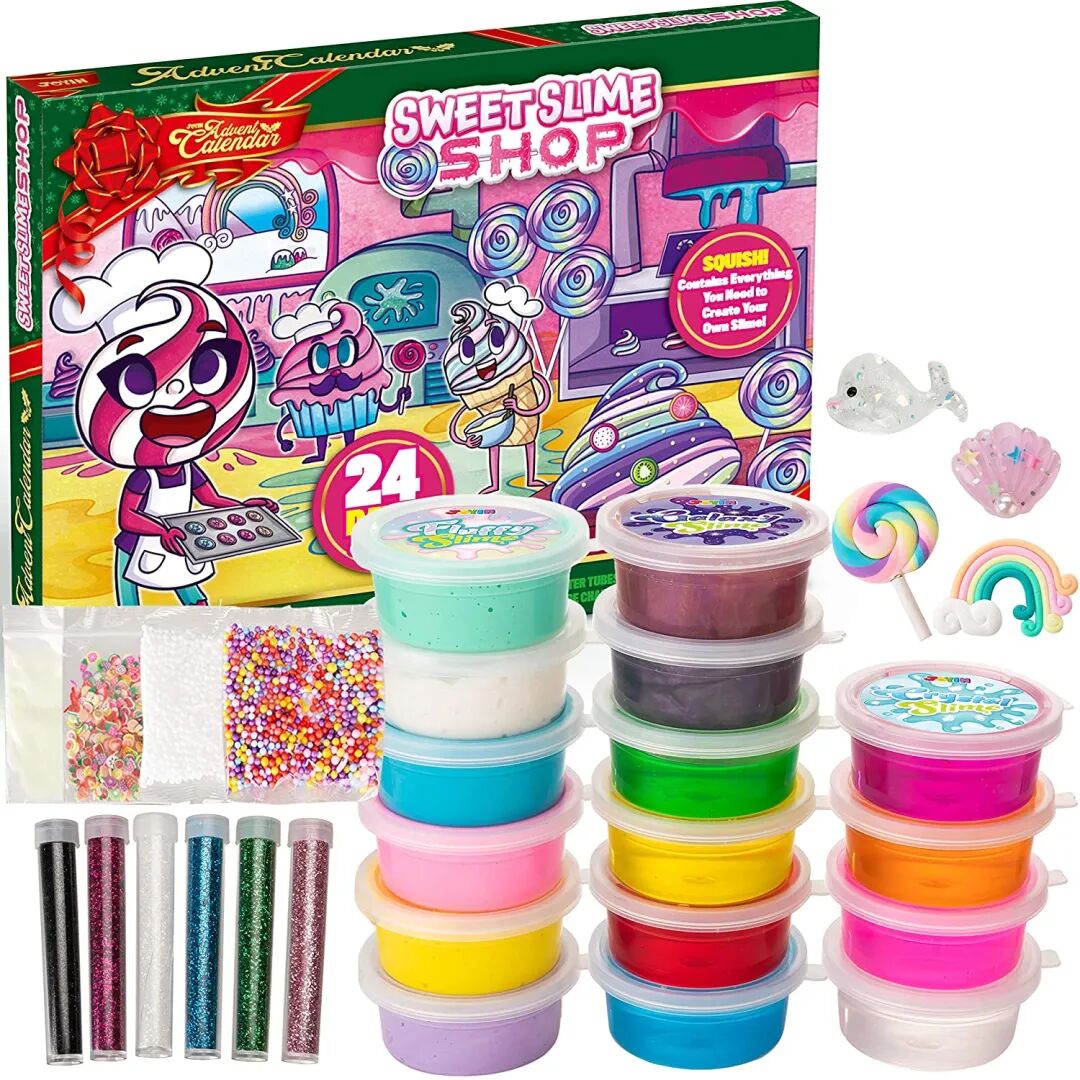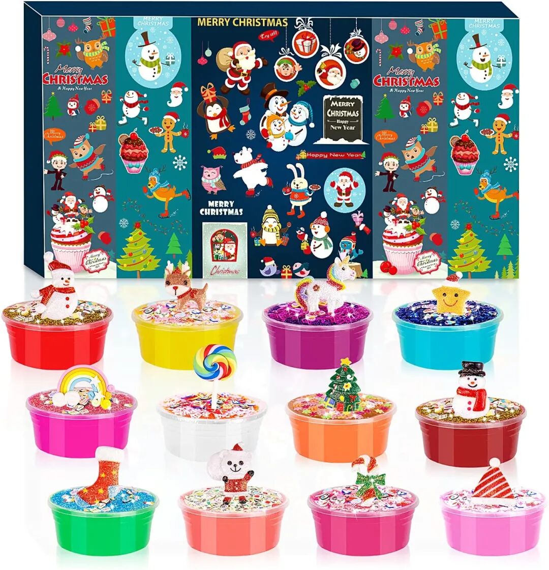 JOYIN 圣诞节 24 天倒数降临节日历,内含16 个史莱姆黏胶和 8 个配件,拥有不同色彩,培养动手能力!