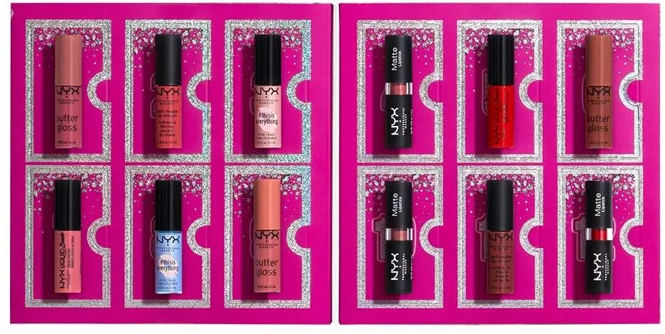 NYX12天圣诞倒计时日历包含口红、唇彩、哑光或缎面唇膏,各种颜色各种质地,一键下单拥有NYX全系列唇膏产品。