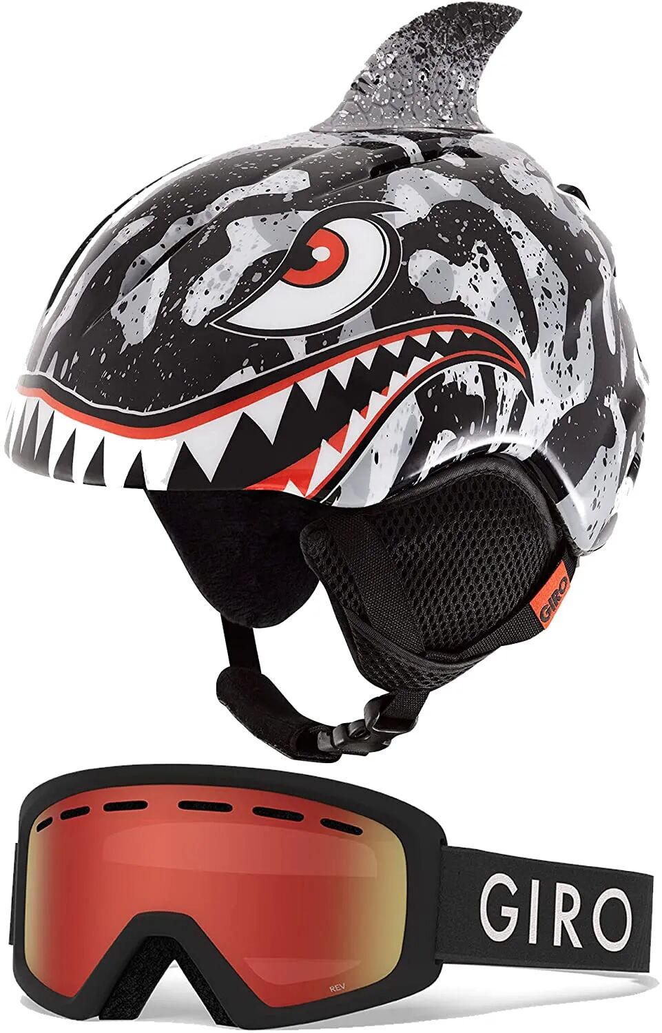 ▲这款Giro儿童头盔配套护目镜,无需另外选购雪镜,成套搭配,趣味设计,小小年纪就是滑雪场最靓的仔。