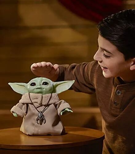 ▲与美泰不同的是孩之宝尤达宝宝支持电动发声互动。轻触头部可以激活丰富的25种声动效果,会动会睡觉打呼噜,萌到让人爱不释手!玩偶尺寸约18.28厘米。