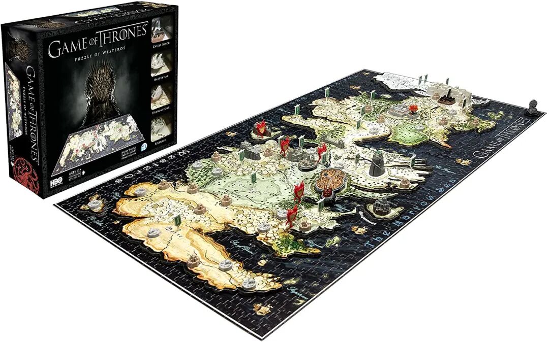 ▲很早之前小Z就在网上刷到过这款非常特别的立体拼图,拼搭体验感爆棚,拼图总共分3层,1层是地图,首先建构出维斯特洛大陆形状、地貌位置;2层地形,构建出七大王国地区;3层有小城堡,包括君临城、临冬城、鹰巢城等经典场景,还有搭配各国旗帜、建筑和5格重大战役的标示物,剧情粉必入!