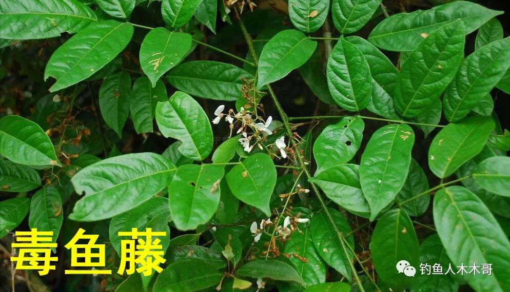 毒鱼藤为豆科藤曼植物,它的叶子和牛大力有几分相似。毒鱼藤里含有一种叫“鱼藤酮”的物质,对水中鱼类毒性很强,鱼一旦接触就会翻白肚,但这种物质对人等一些哺乳动物毒性很轻。