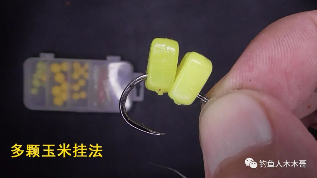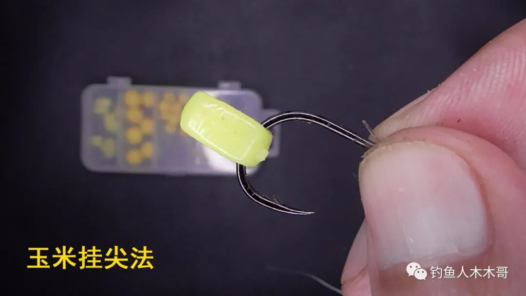 最后补充一点,以上说的三种玉米挂法都要把钩尖部分完全露出,很多人担心把钩尖完全露出鱼看到会不吃,其实这种担心是没有必要,钩尖外露起竿刺鱼会更深,能牢牢钩中鱼嘴,你要把鱼钩藏到玉米粒里头,起竿时被玉米粒挡住根本就挂不牢,所以不要因为自己的疏忽大意,造成脱钩跑鱼的遗憾。