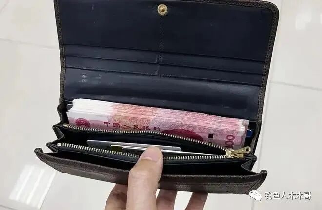 钱先生上周日在河边钓鱼时捡到一个钱包,钱包里头有身份证,银行卡,还有一沓百元大钞,估计得有个三千块钱左右。捡到钱包后钱先生没动歪心思,本来是想把钱包送到派出所让他们处理,但看了证件,发现失主所在小区和自己住的地方不远,就在附近,也别麻烦警察同志了,干脆顺道给他送过去吧!就这样等临近中午收拾完东西,他没有先回家,而是先去送钱包。背着钓箱大包小包,好不容易找到失主家。
