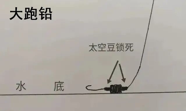 大跑铅其实和跑铅是两种不同的钓法,大跑铅是我们传统钓和闷杆钓最常用到的一种钓法。大跑铅和跑铅的不同点在于,一个是固定,而一个能够滑动,两者都有防止水流走水,小鱼闹窝,浮漂不稳定的效果。大跑铅在使用时没有给铅坠一个活动空间,也就是铅坠在线上是锁死的状态,鱼咬钩以后,只有拉动整个铅坠,浮漂才会出现动作。