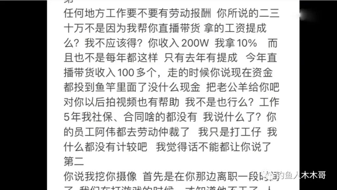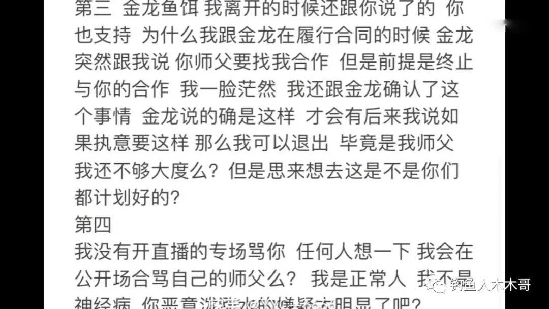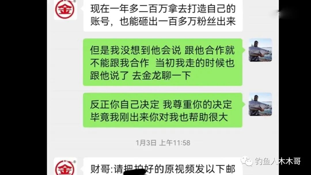 杨永才当然也没闲着,一一回复师父发问说自己是正常人,不会在公共场合骂自己的师父,还晒出了自己和赞助商的聊天记录,作为大毛背后抢赞助商的证据,把矛盾继续升级。文中说一年二三十万是自己帮师父直播带货拿的提成,是劳动报酬,我不应该得吗?而且也不是每年都这样,只有去年才有提成。还有走的时候你说资金都投到鱼竿里了,才把车给了我,说对我以后拍视频有帮助。杨永才对挖摄像一事这么回复,首先摄像在你那边离职有一段时间了,聊天时才知道他不干了,自己并没有挖,到这边也是帮帮我而已,还说师父不要抓着这个摄像的事不放,拼命的跟钓友们讲我挖你摄像师。