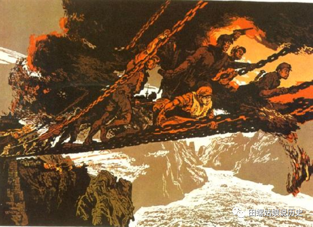 红军察觉到了危险,昼夜不停奔袭,可还是慢了一步,敌人的先头排已经抢先占据了泸定桥,撤掉了桥上的木板,并在对岸构筑了简易的防御工事,红军别无他法,只能选择强攻。当天下午,22名勇士在己方凶猛火力的掩护下,攀着铁索一点一点向对岸靠近,敌人一下子慌了神,将桥上撤下来的木板堆在桥头点燃,妄图阻止他们前进。