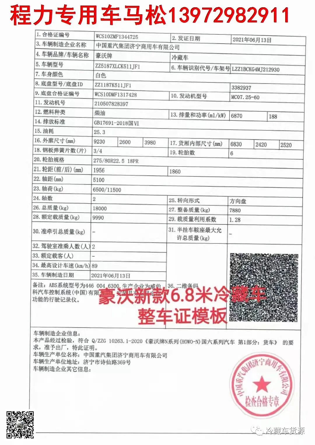 高端配置之王 性价比之王 货箱尺寸6830*2420*2520 重汽ZZ5187XLCK511JF1