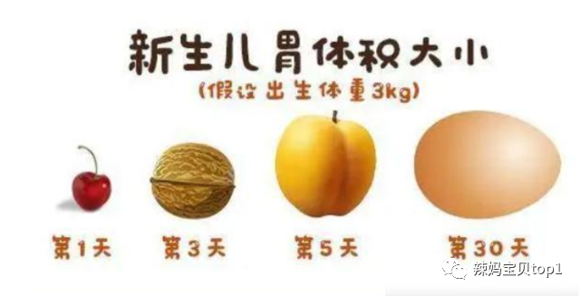 第2点新手的宝妈们需要注意的就是,还处于婴儿期的宝宝们,他们的胃容量是非常小的。刚出生时小家伙,他的胃容量仅仅只有一颗小小的车厘子般大小。