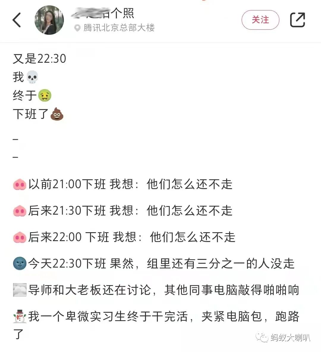 下图是来自某大厂实习生对加班的吐槽,划重点,对方还是实习生哦。