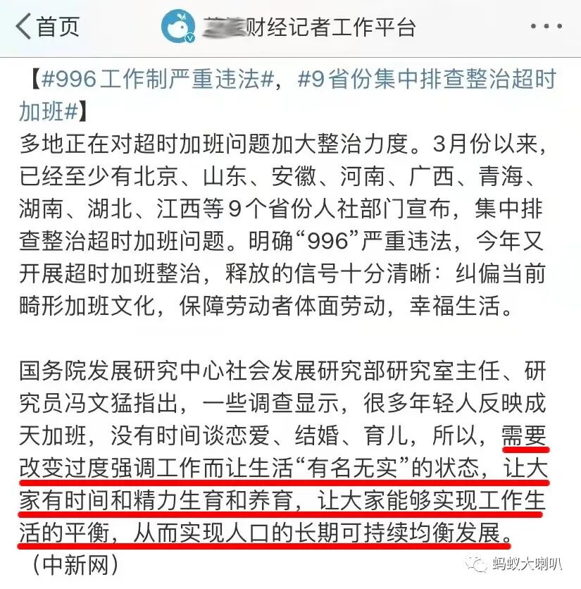 曾经有一个粉丝在平台留言“ 996、007尽情整,年轻人用尽全部力气全部生命时间为所在企业发展添砖加瓦,请问什么时候生孩子,还有那个精力生孩子吗?要年轻人在办公室里一边工作一边生孩子吗? ”