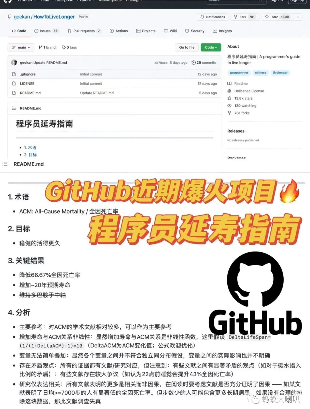 最近GitHub上面出现了一个爆火项目,仅仅几天狂揽13.8k。号称跟着这个项目做可以延寿20年?再也不怕熬夜加班赚的钱没命花了。