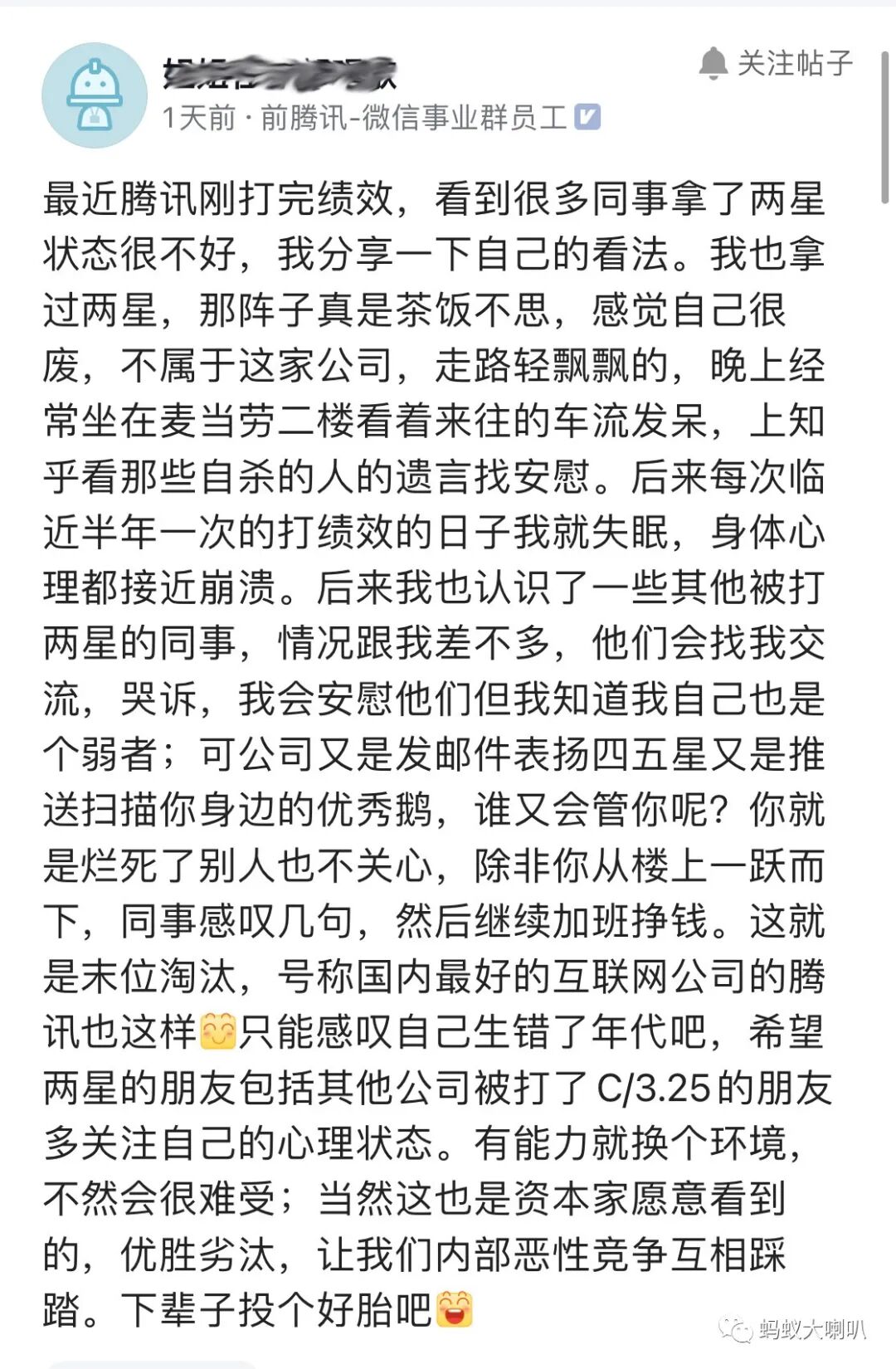 互联网大厂的牛人很多,所以竞争也会很激烈。据了解,腾讯的两星大概就是年终奖基本就只有一两个月,一年内不给晋升机会,一年内涨薪幅度约等于0,主要是这三点。当然,如果第二年还是两星的话(这种情况很少)...。