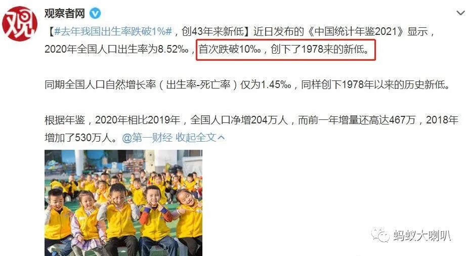 去年我国出生率跌破1%, 按照官方的说话,这个 8.52‰的出生率是1978年以来的最低,恐怕也是很多人意料中的事情。