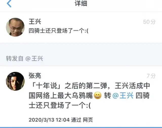 另外还有一张网传的截图,是说王兴在两年前曾说过“四骑士还只登场了一个”。至于四骑士指的是什么,大家自己看最后一张图吧。