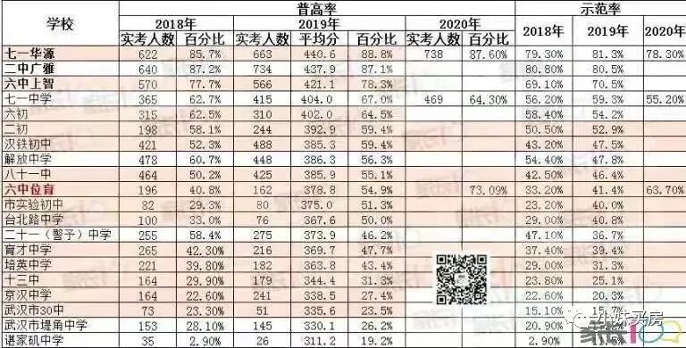 从普高率和示范率来看,2020年江岸区初中排名为:七一华源、二中广雅、六中上智、七一中学、六初、二初、汉铁初中、八十一中和六中位育。