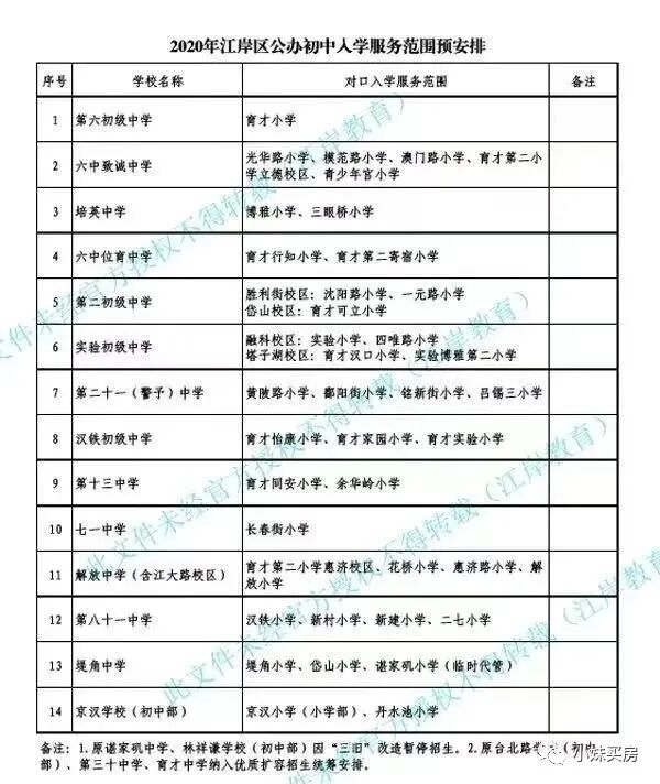 目前江岸区小学对口初中如下: