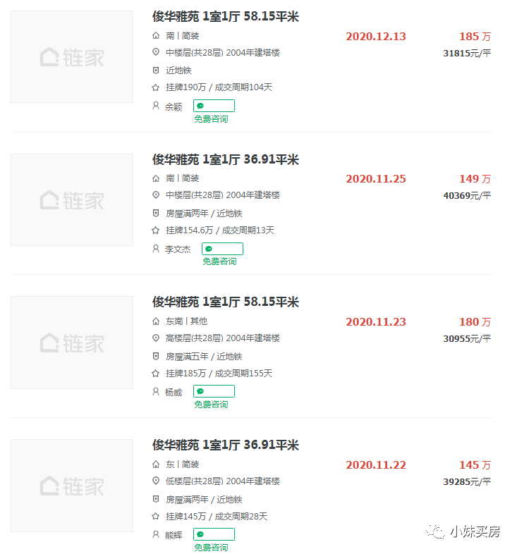 均价约3.5万/平,一般30多㎡左右的一室一厅,成交价在4万左右,基本上150万左右就可以搞定,特别适合有学位和陪读需求的家庭,因此二手房成交相当活跃,近90天就成交了4套,尤其是小户型成交周期都非常短。
