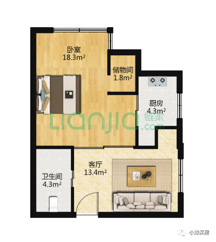 比如小妹踩盘当天看的这套建面约66.59㎡的一室一厅一厨一卫,售价249万。链家户型图如下: