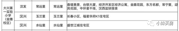 对口大兴第一实验小学金雅校区的小区有香缇美景、东方名都、台银大厦、福星华府K1、盛世江城等。