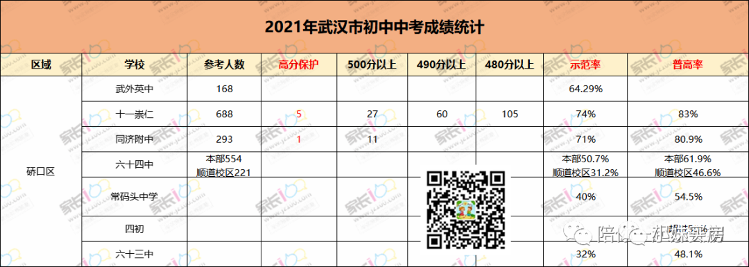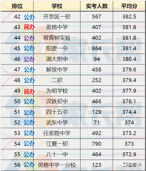 2021年武汉中考各区初中平均分排行榜上,50强中学里硚口区有4所上榜,而且两极分化严重。(平均分排名仅供参考,具体还是要看升学率)。