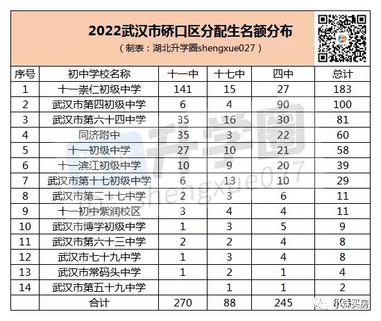 在硚口区的公办初中里,十一初和四初、六十四中获得的分配生数量最多。