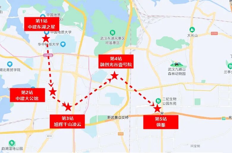 (光谷看房团预计路线,参观顺序和项目可能会根据实际情况做调整,仅供参考)